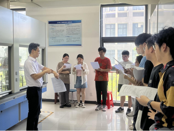 近日,化工与制药学院组织学生在精细化工实验室开展“玩转科学实验,自制无添加防晒霜”劳动教育实践活动,化学工程教研室主任张林锋教授为参加活动的学生讲解防晒霜制备原料及作用原理,同学们分组设计实验配方并自制了“专属”防晒霜。