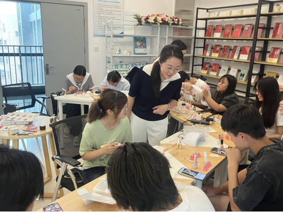 在“一站式” 学生社区,学院开展“领略涂料之美,指尖绽放光彩”美甲劳动教育实践活动。在前期水性木器漆制备活动的基础上,由学院2021级学生荣兴凤分享修甲、护甲、美甲及手部保养等基础知识,并指导学生在甲片上创作指尖艺术。