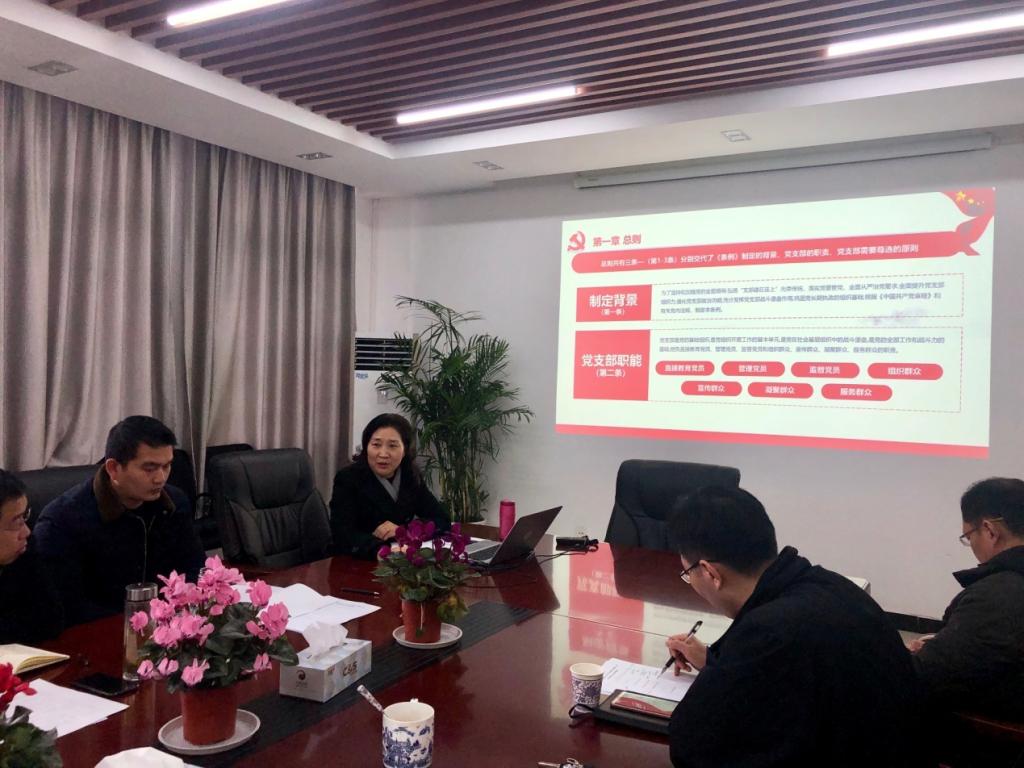 本网讯(通讯员 朱雪洁)12月27日上午,化工与制药学院党委在流芳校区化工大楼605召开院党委理论学习中心组(扩大)学习会,院党委书记王雪梅专题讲解了《中国共产党支部工作条例(试行)》(以下简称《条例》)。
