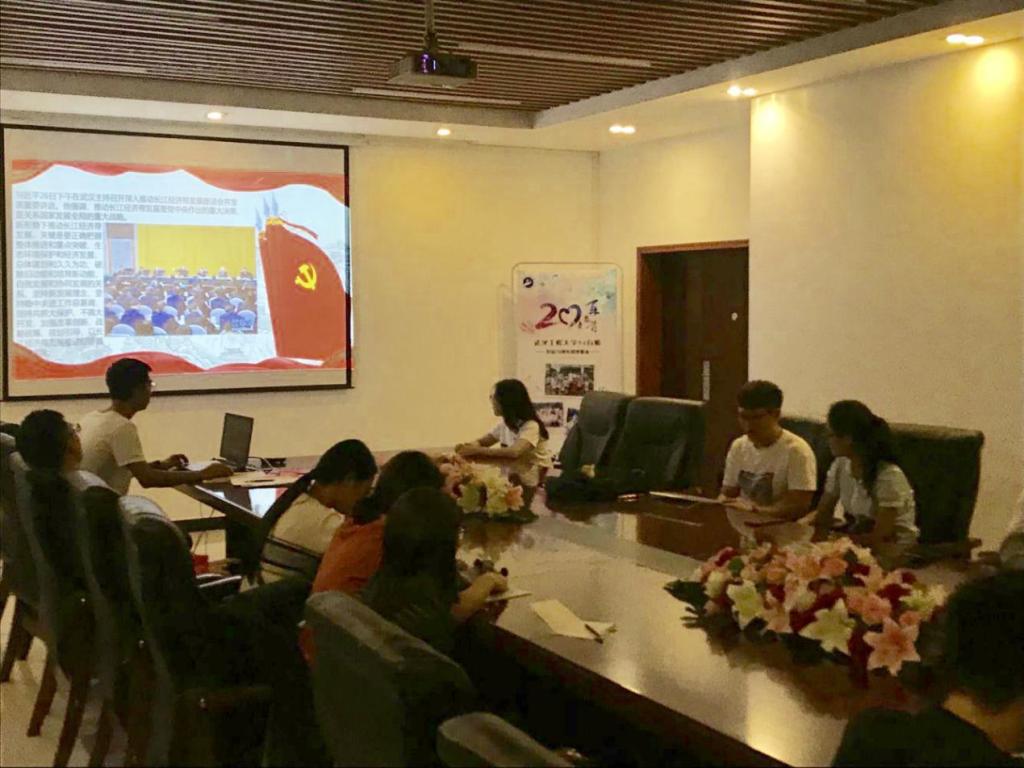 在学习环节,广大党员佩戴党徽,在党旗引领下,完成缴纳党费、奏唱国歌、重温入党誓词、诵读《党章》等规定动作后,各支部采取党员主题发言、轮流讲授微党课,集体观看视频,围绕主题学习讨论等多种形式开展党员主题党日活动,重点学习了习近平总书记视察湖北重要讲话精神、习近平总书记在全国宣传思想工作会议和全国组织工作会议上的讲话精神以及新时代全国高校本科教育工作会议精神和学校2018年暑期中层干部会议精神。