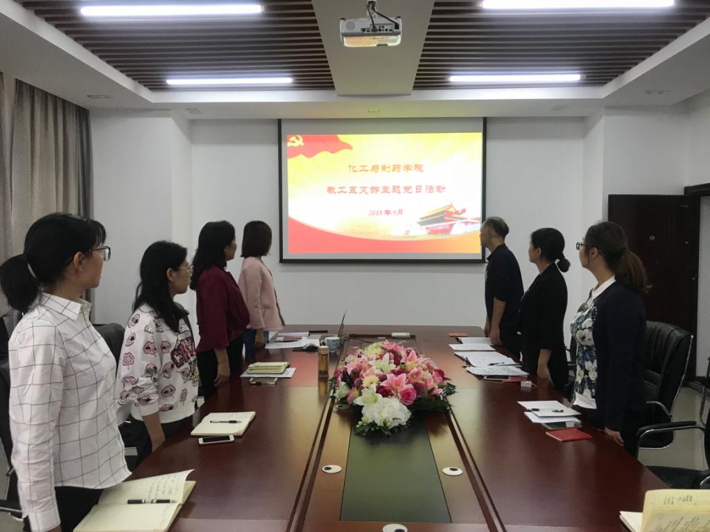 为全面贯彻落实党的十九大精神,推进“两学一做”学习教育常态化制度化,根据校党委组织部《关于开展2018年9月“支部主题党日”的通知》要求,化工与制药学院各师生党支部认真组织开展9月“支部主题党日”活动,院领导班子成员带头学习,以普通党员身份参加所在支部主题党日活动。