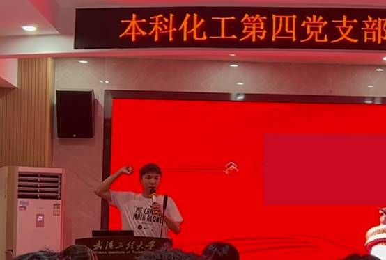 本科化工第四党支部副书记卢骏宇承诺将会接好接力棒,跑好接力赛,在实践中释放青春能量。