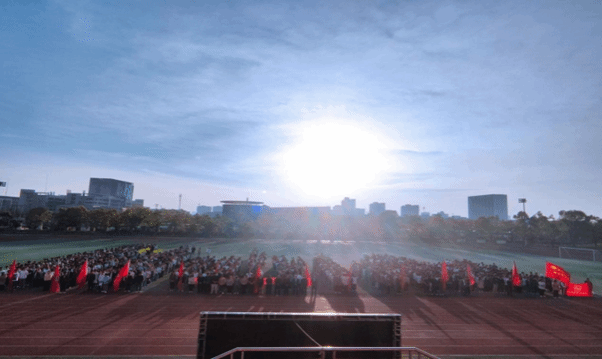 在振奋人心的国歌声中,五星红旗冉冉升起,飘扬于校园上空。