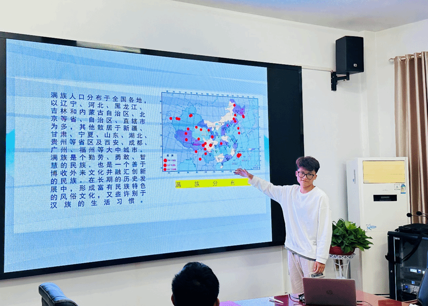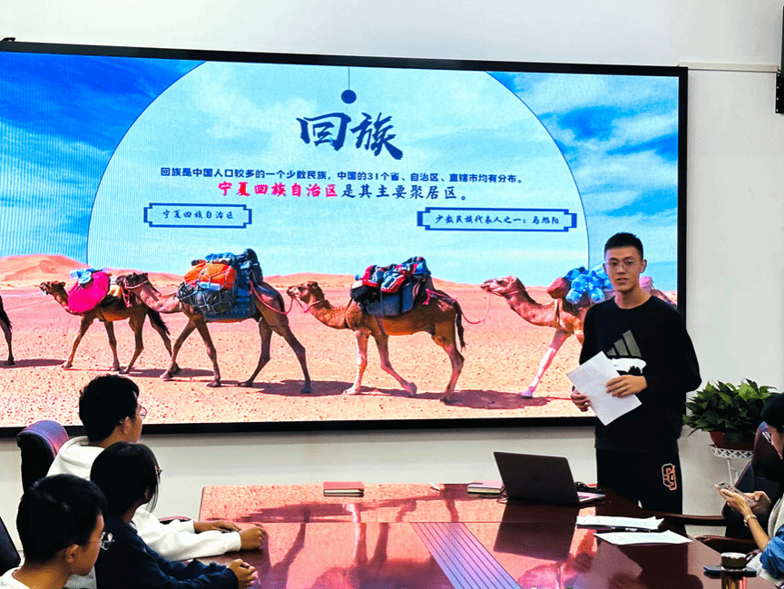 周丹以《石榴籽一家亲 民族团结心连心》为题,讲授了民族团结主题团课,解读“三个离不开”“五个认同”“六个相互”等民族团结基本知识,鼓励在座各族同学们要在学习和生活中做到相互学习、相互帮助、相互尊重,像石榴籽一样紧紧抱在一起,紧密团结,共同进步。