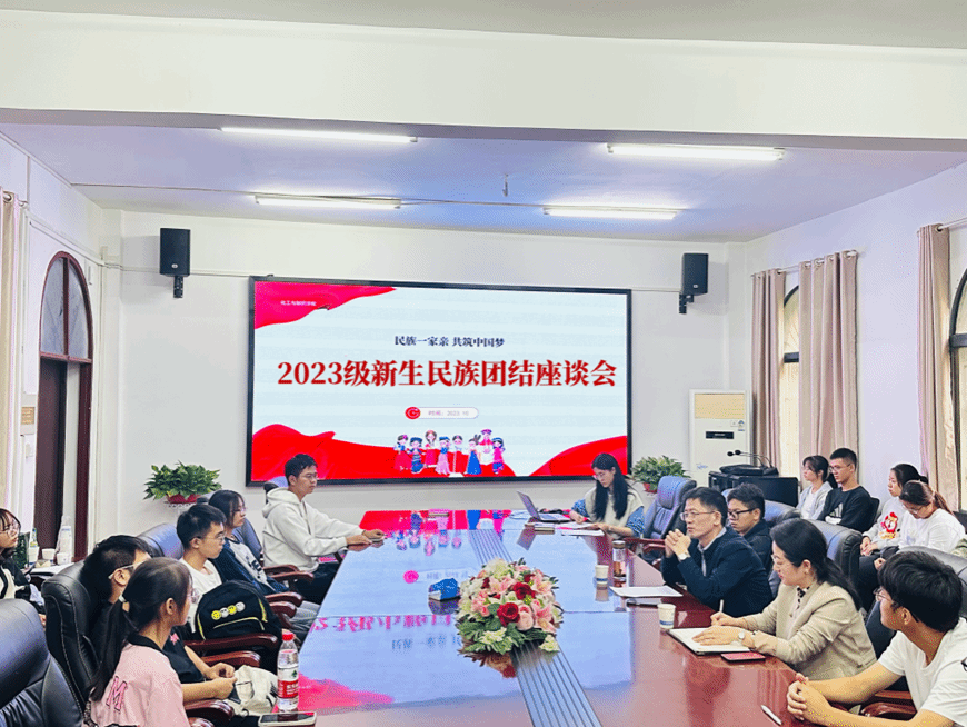 本网讯(通讯员 常琬笛)为深入学习贯彻习近平总书记关于加强和改进民族工作的重要思想,贯彻落实中央民族会议精神,进一步加强各民族学生的沟通和交流,促进民族团结进步,铸牢中华民族共同体意识,10月19日下午,化工与制药学院在西北区一号办公楼202会议室举办2023级新生民族团结座谈会,学院党委书记汪铁林、党委副书记周丹、2023级新生辅导员蓝传祺出席本次座谈会,学院40余名各民族新生参加,座谈由学院党务干事常琬笛主持。