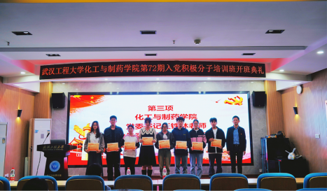本网讯(通讯员 刘悦薇)10月25日中午,中共武汉工程大学委员会党校化工与制药学院分党校第72期入党积极分子培训班开班典礼在化工大楼610教室举行。学院党委书记汪铁林、党委副书记周丹及本期参训学员共130余名师生代表出席本次开班典礼。开班典礼由本期党校培训班班主任刘悦薇老师主持。
