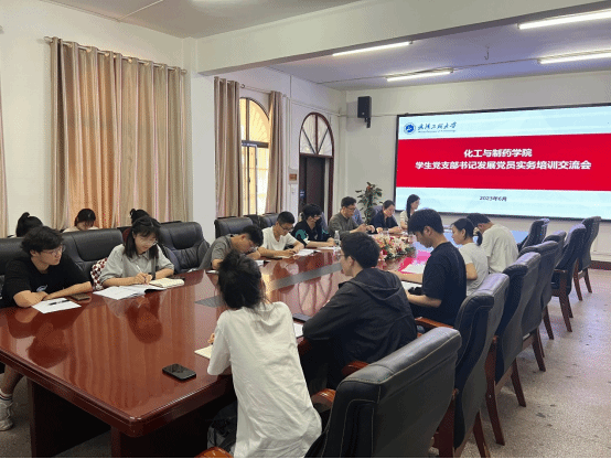 本网讯(通讯员 常琬笛)为深入开展学习贯彻习近平新时代中国特色社会主义思想主题教育,牢牢把握“学思想,强党性,重实践,建新功”总要求,持续加强学院学生党员队伍建设,建强基层党支部战斗堡垒,6月19日下午,化工与制药学院在西北区办公楼202会议室举行学生党支部党员组织发展第二期专题培训会。学院党委副书记周丹,组织员黄克文及全体学生党支部委员参加了此次培训,会议由党务干事常琬笛主持。