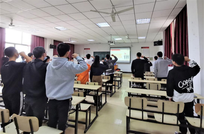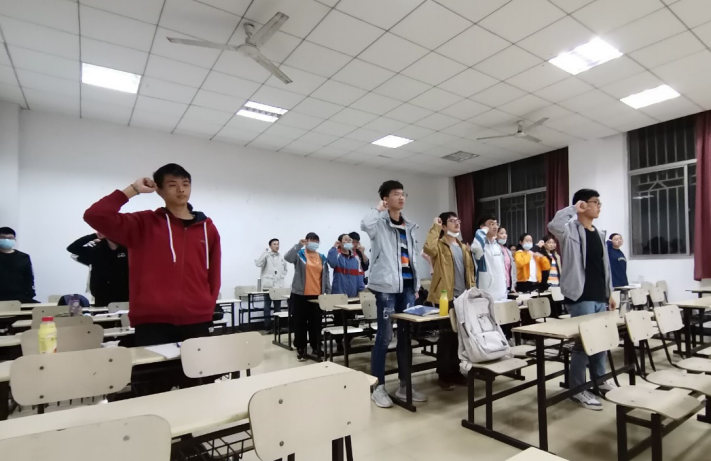 集体庄严宣誓。主题团日班会上,团支书带领着全班同学宣誓。同学们集体起立,右手握拳,庄严地许下自己的诺言:“我将严格遵守当地有关部门关于疫情防控的各项规定,听从学校安排,保持联络通畅,非必要不外出,勤洗手,戴口罩,积极配合,每日定时汇报健康情况,为新学期做好合理安排和规划,发奋学习,提升自己,抗疫有我,以身践行,彰显当代大学生的责任与担当。”