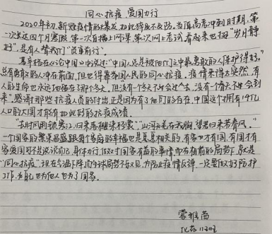 所思所感所悟。惊心动魄的抗疫大战和艰苦卓绝的历史大考,见证了中华民族的精神伟力。此次“同心抗疫,爱国力行”主题系列活动让化药学子感受到了伟大的中国速度、中国力量和中国精神。每个学生都有所触动,我们一起来看看大家的所思所感吧。