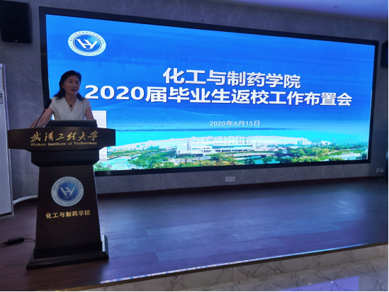 本网讯(通讯员 周雅琪)6月15日上午,化工与制药学院在化工大楼多功能报告厅召开2020届毕业生返校工作布置会。学院党委书记王雪梅、院长汪铁林,副院长龙思会、金放,各系(中心)主任、导师、班主任,全体辅导员以及一帮一教师志愿者参加会议,会议由党委副书记周丹主持。
