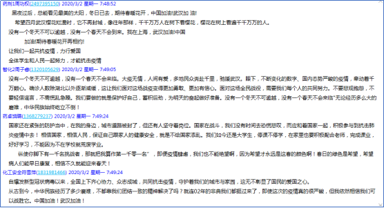 2018级在班级QQ群,班团工作群开展升旗仪式,学生代表干雯以“疫情之我看”为主题做分享。