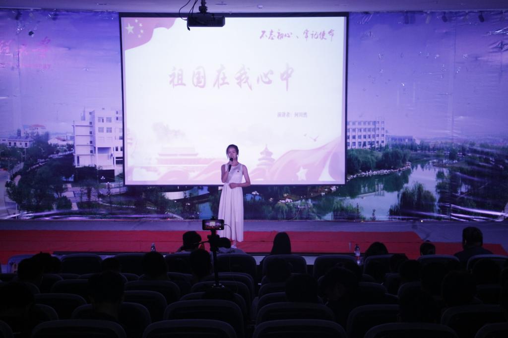 晚会最后,全体师生合唱《我爱你中国》,深情告白伟大的祖国、共同致敬伟大的新时代,师生和着节拍挥舞着手中的红旗,心潮澎湃,激情高歌,尽情释放和表达对祖国母亲的热爱与赞美。