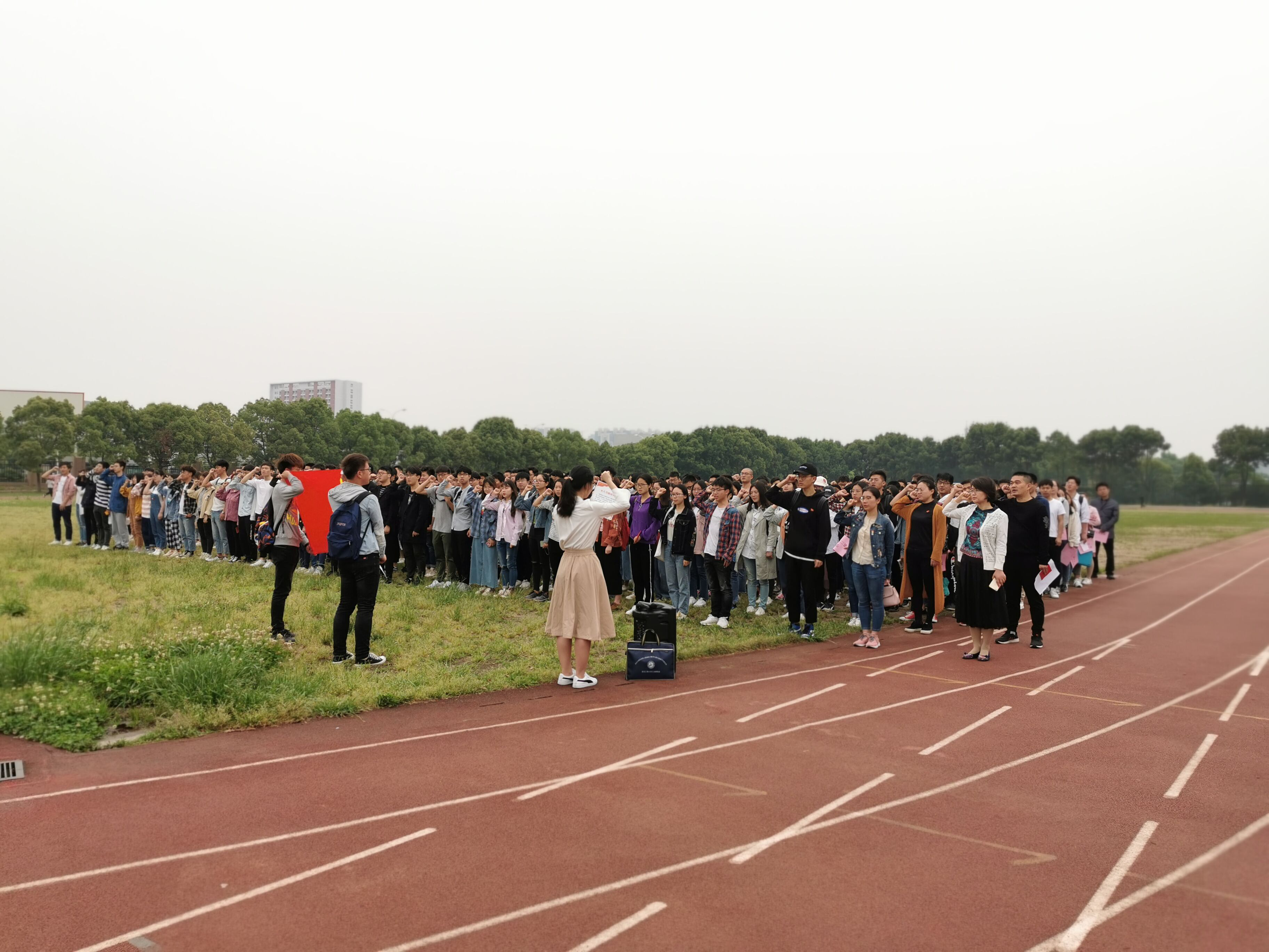 本网讯(通讯员 沈霁月)为纪念五四运动100周年,弘扬“爱国、进步、民主、科学”的五四精神,激励青年学子进一步坚定理想信念、为实现中华民族伟大复兴的中国梦而努力奋斗,5月6日清晨,化工与制药学院于流芳校区新田径场举行了“传五四精神,承红色基因”——纪念五四运动100周年升旗仪式。党委学生工作部副部长徐迪迪、化工与制药学院副书记田勇、学院全体辅导员和全体本、硕、博16个党支部318名学生党员、第63期党校培训学员共计500余人参加了升旗仪式。