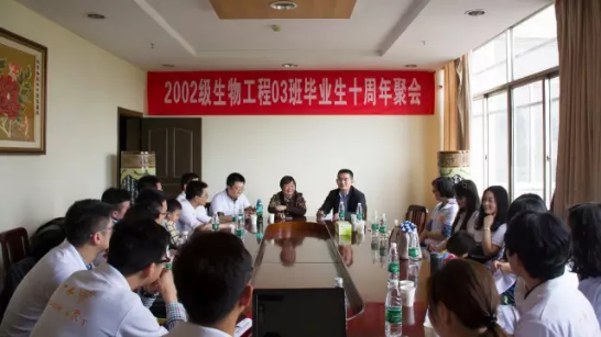 2016年4月16日下午,2002级生物工程03班二十余名毕业生齐聚武昌校区办公楼618会议室,与当年的班主任、专业课教师代表以及学院副书记共聚一堂,畅谈毕业十年来学校、学院、生物专业以及各自的发展。