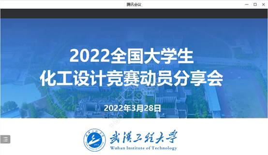 本网讯(通讯员 汤曦)为培养大学生的创新思维和工程技能,增强大学生的工程设计与实践能力,提高学院学生提交化工设计竞赛作品质量,近日,化工与制药学院举行化工设计竞赛动员会,会议落实疫情防控要求,通过腾讯会议线上进行,化工与制药学院副院长金放,化工设计竞赛指导教师代表杨犁、张林锋及参赛学生团队参加此次会议。