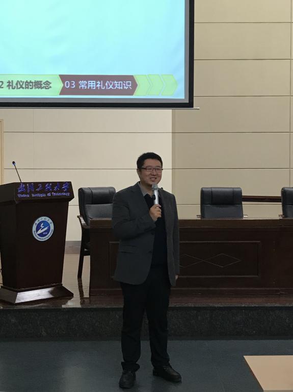第130期微特讲坛在流芳校区多功能报告厅举行,校学工部部长王涛以“大学生礼仪”为主题进行了分享,化工与制药学院大一全体学生参加了此次讲座。