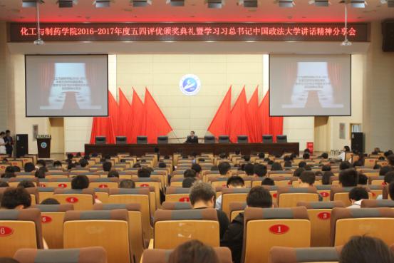 5月23日中午,“化工与制药学院2016-2017年度五四评优颁奖典礼暨学习习近平总书记中国政法大学讲话精神分享会”在正妹