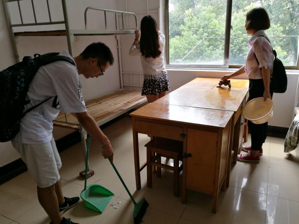 为给新生营造一个舒适的居住环境,学院于8月31日全面启动2016级迎新工作,学院全体辅导员、全体学生干部在党委副书记田勇老师的带领下,深入每一间新生寝室检查、打扫卫生,排查存在的问题并及时上报总务处。针对提前报到新生,学院安排专人一对一对接落实。