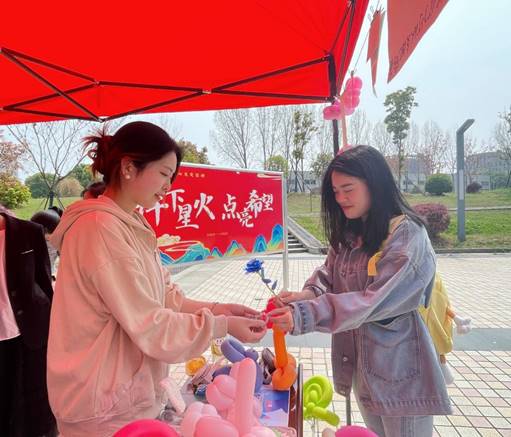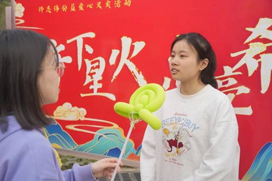“在大一入学教育活动中,我了解了许志伟学长的英勇事迹,一直激励着我积极参与志愿服务活动。今年是许志伟学长牺牲的第二十年,同学们希望把许志伟学长‘坚定信仰、勤奋学习、乐于奉献、舍己为人’的精神传承、弘扬下去,便有了发起义卖,筹建许志伟微光基金的想法。刚开始做手工的时候还是有点困难,在其他同学的耐心帮助下,我也能熟练地将气球变成小动物,将折纸变成蝴蝶。这个活动让我真正明白许志伟精神的内涵,以小爱成大爱。”许志伟班团支部冯克任分享了他的感受。