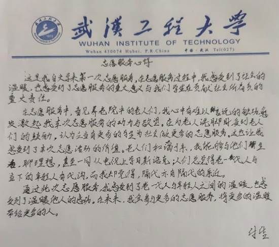 自入学以来,我有幸参与了此次社会实践活动。在实践过程中,我深刻地感受到了社会的温暖和关怀,同时也认识到了志愿服务的深远意义。作为学生,我们肩负着为社会贡献力量的重大责任。在这次志愿服务中,我有幸与养老院中的长者们进行互动。他们的心态让我内心产生了难以言表的触动,激发了我对本次社会实践的热情和动力。在为长者们洗脚的过程中,我得到了他们的鼓励和支持,他们认为应当有更多的学生投身于社会志愿服务中,为社会做出更大的贡献。这让我深刻体会到了本次志愿活动的价值所在,也感受到了老一辈人与年轻人之间的深厚情感交流,更体会到了传递温暖的感动。展望未来,我将更加积极地参与社会实践及志愿服务活动,为更多的人带去温暖和关爱。