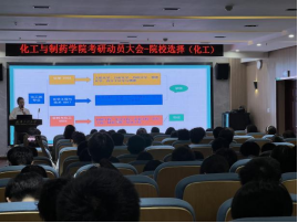 会上,易群结合自身求学经历,生动形象地给同学们描绘了化药学子求学发展的奋斗历程。他向同学们展示了学院优秀毕业生就业去向和考研成果,综合分析了当前的考研和就业形势,强调升学深造的重要意义,鼓励同学们要抓住机会努力学习,提高自身综合实力和竞争力,成为高层次人才。易院长对学院历史沿革、学科建设、科学研究等方面做了介绍,分析了报考本校的优势,动员广大化药学子积极报考化药学院研究生。同时,易群院长分析了同学们对就业市场的担忧和压力,鼓励同学们要正确认识挑战,积极应对,保持乐观心态。他建议同学们根据自身情况准确定位自身能力,了解不同的企业,强调先就业再择业,重视结果的导向,引导同学们做好两手准备。