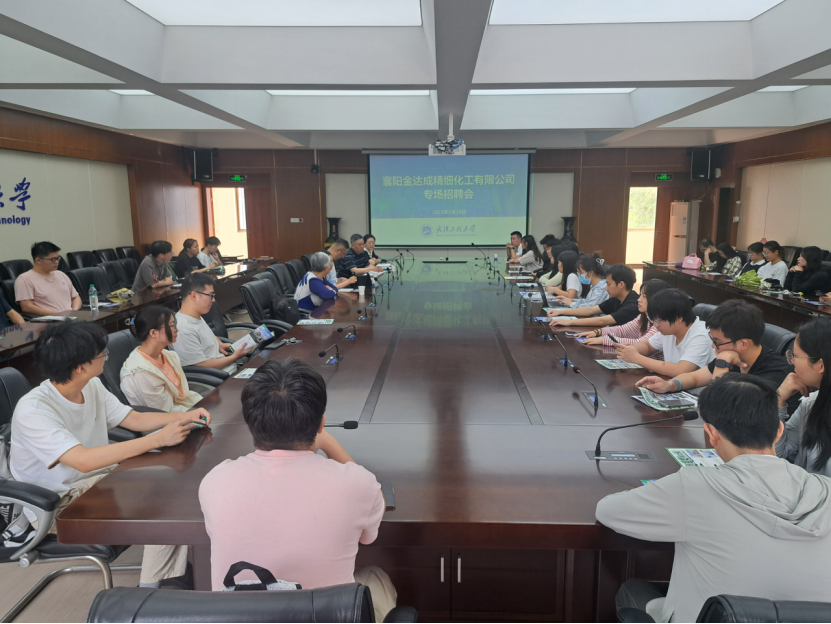 本网讯(通讯员 汤曦)5月26日,化工与制药学院联合机电工程学院、化学与环境工程学院在钟楼第二会议室共同举办襄阳金达成精细化工有限公司专场招聘会。襄阳金达成精细化工有限公司副总刘涵林、总经理张震、总工程师张雪和技术专员张洪梅受邀来校招聘,会议由化工与制药学院党委副书记周丹主持。