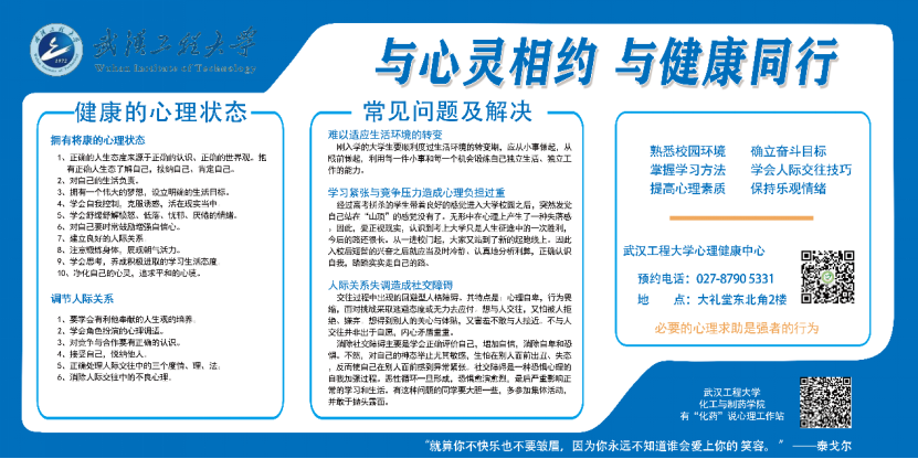 有“化”“药”说心理工作站广泛利用学校线上线下宣传平台,通过制作展板、电子宣传标语等方式宣传心理健康知识,营造良好的氛围。