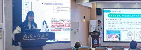 学院获得 “挑战杯”国家二等奖的团队成员方思和杨圳伟为同学们讲解了 “挑战杯”的竞赛简介、赛程安排、团队组建、计划书撰写等部分,结合自身经历分享了参赛技巧、方法和心得。获得节能减排大赛国家二等奖的团队成员洪秋贤和李博豪分别从队伍组建、项目立意、答辩技巧等方面进行了详细分享,并介绍了项目挖掘策略,说明项目作品说明书应关联国家导向,注重解决实际问题,通过效益计算分析和制作视频来提高项目的可信度和可完成性,彰显出作品的科学性和先进性。