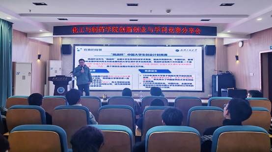 本网讯(通讯员 汤曦)为进一步激发学院学生创新创业热情,全面提升学生学科竞赛水平,3月14日,化工与制药学院在化工楼610报告厅举办创新创业与学科竞赛交流分享会。分享会邀请校创新创业学院教师张聪、学院获得“挑战杯”和节能减排竞赛国家级奖项的团队代表进行经验分享,学院研究生和本科学生代表参会,会议由学院研究生辅导员汪喆伦主持。