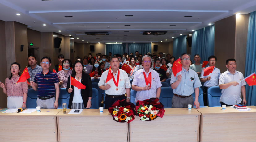 本网讯(通讯员 沈霁月)7月1日上午,化工与制药学院在化工大楼610报告厅举行庆祝中国共产党“百年华诞百年荣光”主题教育活动,化工与制药学院领导班子成员、教工党支部支部委员、学生党支部书记及本学期新发展党员代表参加,此次活动特邀“光荣在党50年”纪念章获得者代表、离退休处党员王广达和张汉生同志出席活动。活动由学院党委副书记周丹主持。