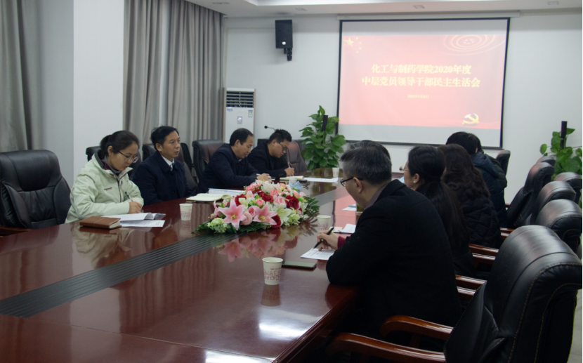 本网讯(通讯员 沈霁月)根据学校工作部署,1月21日上午,化工与制药学院在大化工楼605会议室召开学院2020年度中层党员领导干部民主生活会。校党委书记程幼金、党政办公室主任马小龙、党委组织部副部长左辉、党政办王金领老师到会指导,会议由学院党委书记王雪梅主持,领导班子全体成员参加会议。