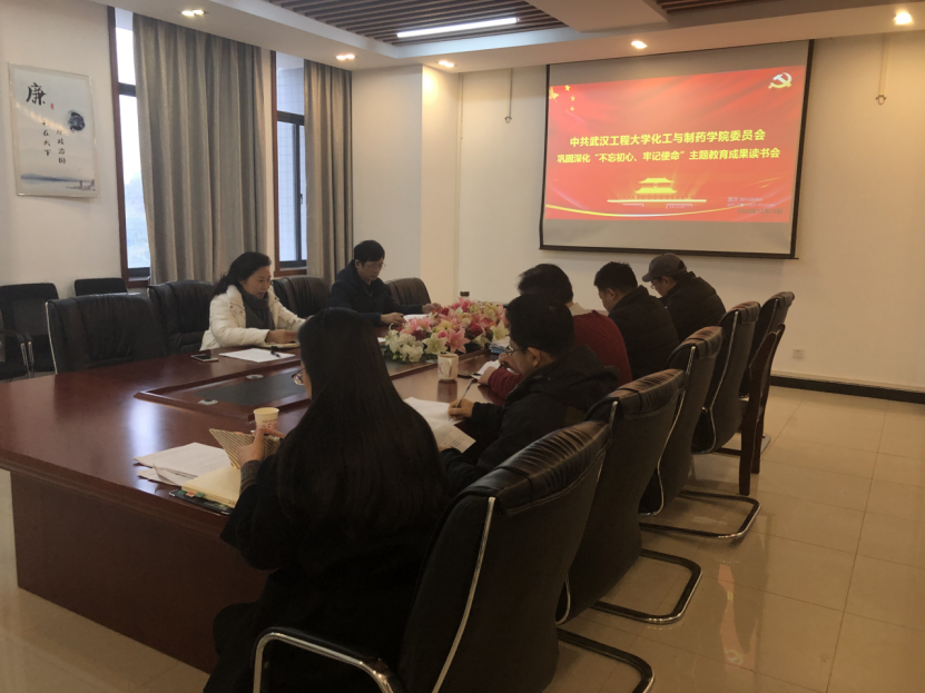 本网讯(通讯员 沈霁月)12月17日,化工与制药学院党委在化工大楼607会议室召开巩固深化“不忘初心、牢记使命”主题教育成果读书班专题研学会,学院全体党委委员参会,会议由学院党委书记王雪梅主持。