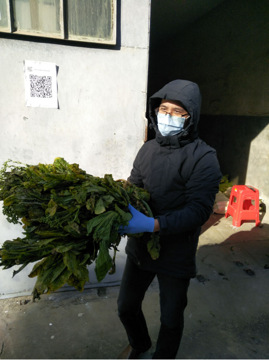 第一次值班,龙老师和李老师的主要任务是为社区的居民分发蔬菜。从上午八点半到下午五点,他们要从仓库将新鲜的蔬菜搬运到社区门口,按分量分好份儿,然后将蔬菜分发给有需要的居民,确保社区的居民在疫情期间的生活不受影响。短短的路程,来回搬运下来,早已汗流浃背,为了防护需要,他们再闷也不能脱掉口罩。分发蔬菜期间,党员教师们时刻提醒前来取菜的居民,要做好防护措施,疏导他们的情绪,倡导大家理性对待疫情、增强抗疫信心、做好健康自查。