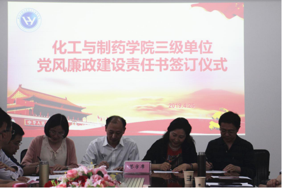 学院党委书记王雪梅、院长喻发全与三级单位代表化学工程系主任闫志国、化工第二支部书记余响林签订党风廉政建设责任书。