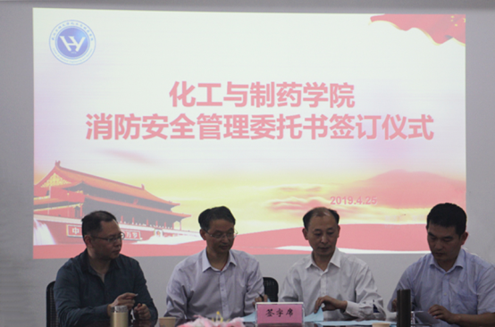 喻发全与党委副书记田勇,副院长郭嘉、刘生鹏分别签订二级单位消防安全管理委托书。