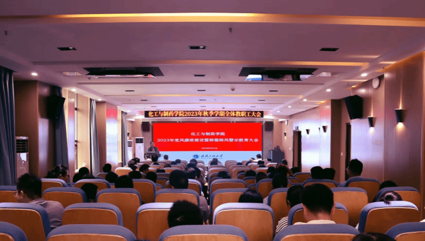 本网讯(通讯员 常琬笛 李哲伦)为贯彻落实学校《2023年武汉工程大学党风廉政建设宣传教育月活动方案》《关于开展2023年师德师风警示教育活动的通知》要求,深入推进党风廉政建设走深走实,9月22日上午,化工与制药学院在化工大楼610报告厅召开2023年党风廉政建设暨师德师风警示教育大会,会议由院党委副书记周丹主持,学院全体教职工参加会议。