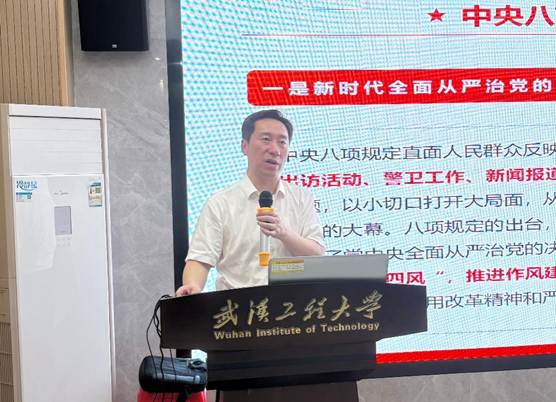 杨海波从深刻认识中央八项规定精神的重大意义、准确把握中央八项规定精神的内涵要求、违反中央八项规定精神的主要表现形式及典型案例剖析、以学习教育为载体推动作风建设取得新成效等方面进行讲解。杨海波指出,深入贯彻中央八项规定精神学习教育,是巩固深化学习贯彻习近平新时代中国特色社会主义思想主题教育和党纪学习教育成果、纵深推进全面从严治党的重要举措,是密切党群干群关系、推进中国式现代化的有力保障。学习教育必须同贯彻落实上级决策部署、完成校院两级重点工作任务结合起来,将学习成效及时转化为推动发展的强大合力。