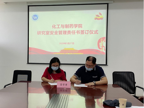 学院分管安全工作郭嘉副院长与研究室责任人代表李萍签订消防安全管理责任书。