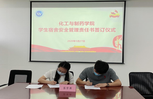 学院党委副书记周丹与辅导员代表黄钞华签订学生宿舍安全管理责任书。