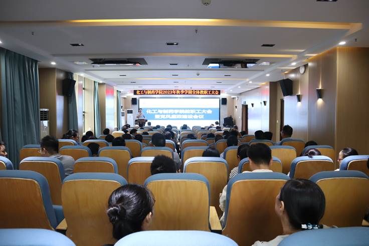 本网讯(通讯员 李哲伦 常琬笛) 9月22日上午,化工与制药学院在流芳校区大化工楼1号楼610报告厅召开新学期全体教职工大会。学院院长易群主持会议。学院全体教职工参加会议。