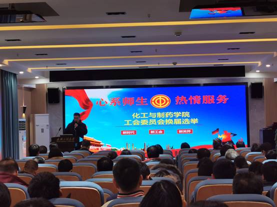 本网讯(通讯员 谌伟民)12月26日下午,化工与制药学院工会委员会换届选举大会在学院报告厅成功召开,学院领导班子成员、全体教职工参加大会,会议由学院党委副书记周丹主持。