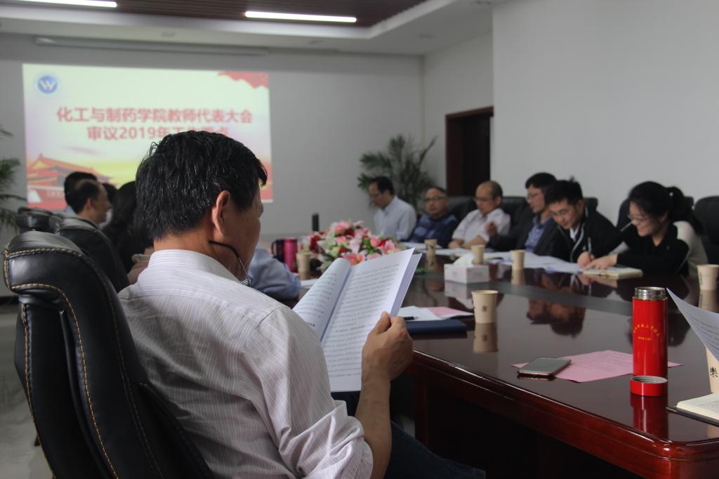 教师代表大会举行专题会议,审议、通过《化工与制药学院2019年工作要点》。学院领导班子,各发展中心主任、副主任,党支部书记、副书记,学院教代会代表及特邀代表参加了会议,会议由学院党委副书记田勇主持。