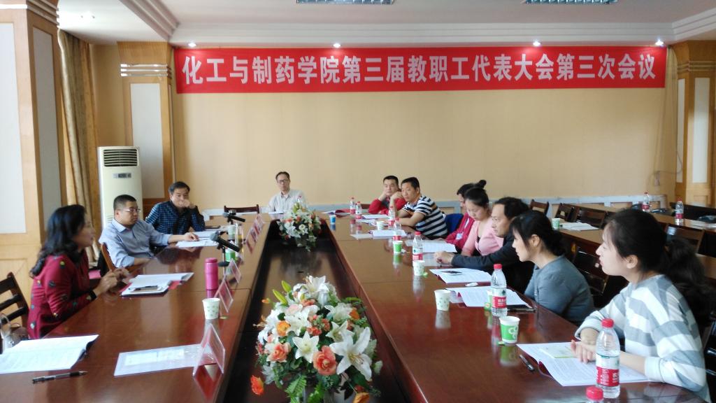 学校工会常务副主席严乐发表热情洋溢的讲话,严主席首先对化工与制药学院第三届教代会第三次会议的胜利召开表示热烈的祝贺,他充分肯定了学院分工会和院教代会在学院建设发展中所做的工作和发挥的作用,并预祝大会取得圆满成功。随后化学与环境工程学院分工会主席袁华教授向大会召开致贺辞!