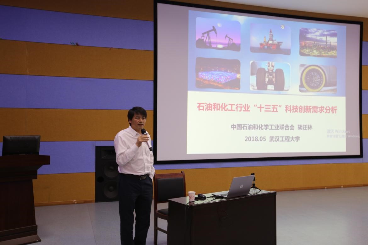 ,并在文科楼313会议室作了题为“石油和化工行业“十三五”科技创新需求分析”的学术报告。报告会由校长王存文教授主持,校纪委书记徐慢教授、华中科技大学研究生院常务副院长解孝林教授、化工与制药学院党委书记王雪梅研究员,以及从事相关研究的师生近200余人到场聆听报告,并与胡研究员进行了深入交流。