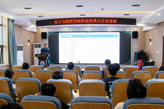 本网讯(通讯员 汤曦)5月5日下午,由学校招生与就业工作处主办,化工与制药学院承办的职业经理人行业讲座在流芳校区化工大楼610报告厅和腾讯会议室同步举行。上海森松制药设备工程有限公司武汉分公司总经理黄胜受邀作“化工与制药相关专业如何适应国家智能制造产业升级”的主题报告,学院党委副书记周丹、院长助理刘根炎出席会议,学院教师樊庆春、350余名学生代表参加会议,会议由19级辅导员汤曦主持。