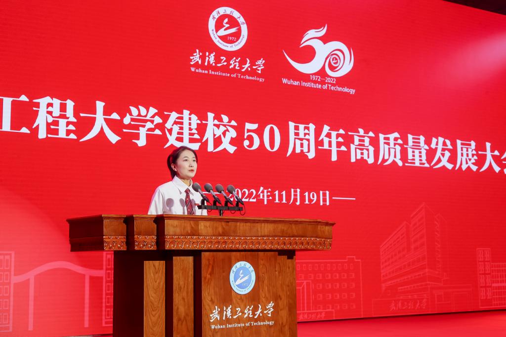 2019级制药工程专业刘子茹:很荣幸能够作为学生代表在武汉工程大学建校50周年高质量发展大会上发言。这次大会,我不仅从王存文校长“化育天下,守正开新,在新征程上奋力开创学校事业高质量发展新局面”的大会报告中看到工大五十年来在各领域的长足发展、辉煌成就和新时代征程伟大宏图,也从校友们和老师们的发言中看到工大人用实际行动践行着“艰苦奋斗、自强不息”的精神和“格物明理、致知笃行”的校训。站在新时代推进中国式现代化新征程上,工大人使命在肩,我辈也定全力以赴,在青春赛道上跑出属于我们这代人的最好成绩,为学校再续辉煌!