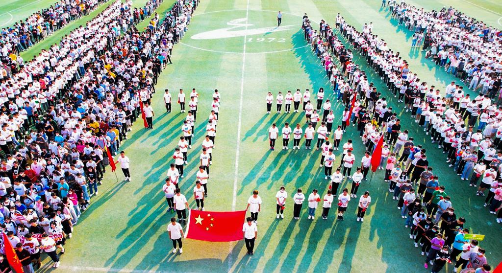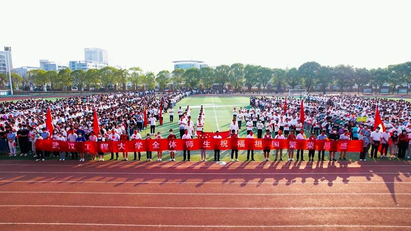 化工与制药学院新生代表73人排列成了一个巨大的“73”,挥舞着鲜艳的五星红旗,象征祖国历经73载,愈发繁荣富强。