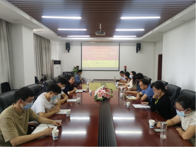 本网讯(通讯员 沈霁月)9月2日下午,化工与制药学院在化工大楼605会议室召开了“浸润心灵 助力成长”第五期班主任研讨会暨2022年迎新工作部署会,学院副书记周丹,中心主任及2022级全体班主任、学生党员副班主任参加会议,本科2022级新生辅导员沈霁月主持会议。