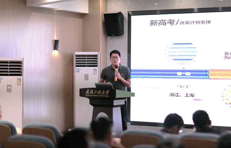 招生与就业工作处办公室主任顾家续围绕新高考政策、志愿填报模式、投档录取办法等内容,为学院教职工作招生宣传工作培训。