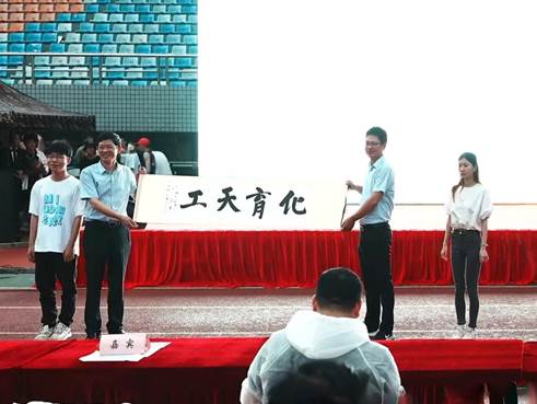 殷殷母校情,悠悠学子意。学院领导为研究生、本科生优秀毕业代表发放毕业暖心大礼包,专属定制学位服是对学生们努力学习、刻苦钻研的认可;学院定制版“五十周年”口罩则是母校的牵挂与留恋。2022届毕业生们为学院送上礼物—“化育天工”的卷轴书画,表达了对学院的浓浓感激之情。